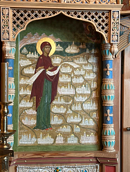 Во время этих паломнических поездках обязательно в двух храмах подворья совершаются молебны. В каменном молебен служится перед иконой и ковчегом с частицей мощей святого Иоанна Крестителя, а в деревянном храме перед иконой Божией Матери «Неувядаемый цвет».