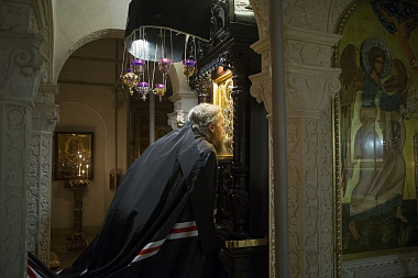 Затем владыка Иоанн совершил чтение Великого покаянного канона прп. Андрея Критского, а по окончании великого повечерия обратился ко всем собравшимся с архипастырским словом.