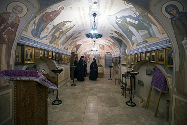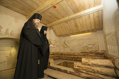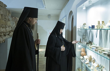 После богослужения епископ Иоанн посетил Музей истории монастыря в подклети храма Рождества Пресвятой Богородицы, где ознакомился с результатами археологических работ на территории обители и экспозициями уникальных находок, а также различных предметов монастырского быта, сохраненных боголюбивыми людьми в годы гонений. Матушка игумения провела для Владыки экскурсию, рассказала об основных событиях истории и святынях монастыря.