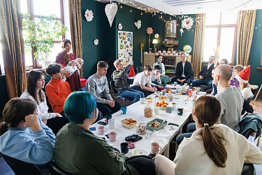 После рождественского Богослужения колядуем, радуемся рождению Спасителя и делимся радостью с окружающими. Этой традиции уже 12 лет. После колядования разговляемся, общаемся на тему Рождения Спасителя и ребята дарят подарки. Беседа – центральная часть встречи, на которую приходят как постоянные участники клуба, так и те, кого видим 1-2 раза в год. Поэтому говорим с ребятами о вере, отношениях с Богом и христианских ценностях.
