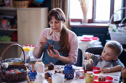 Играли в подвижные игры на свежем воздухе, на тематическом мастер-классе покрывали разноцветной глазурью куличи, украшали мармеладом и маршмеллоу, расписывали яйца.