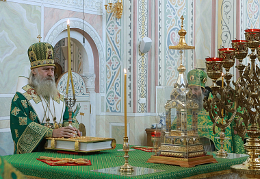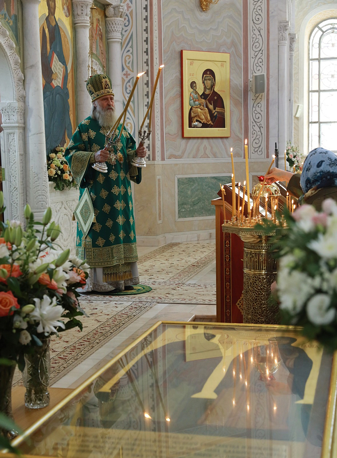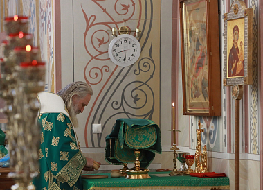 Его Высокопреосвященству сослужило духовенство обители.