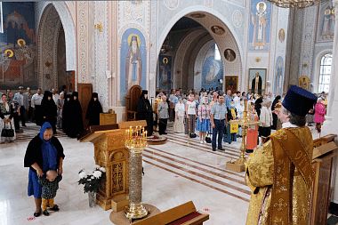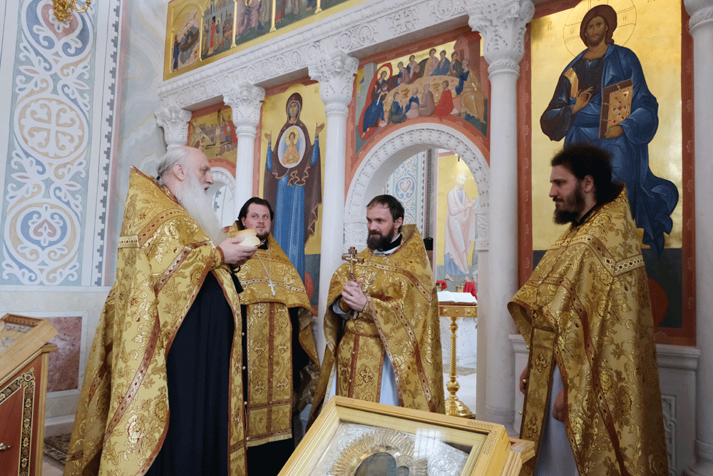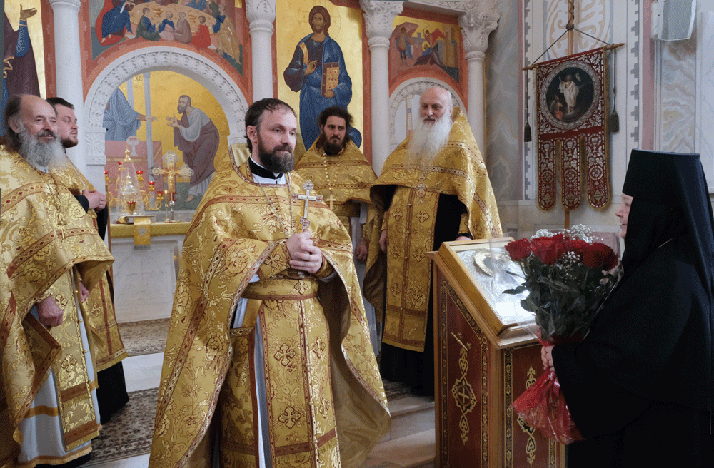 По окончании Литургии настоятельница монастыря игумения Олимпиада (Баранова), клирик обители архимандрит Амвросий (Кравчук) и прихожане поздравили с днем тезоименитства клирика монастыря иерея Павла.