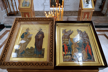 В этот день праздничная Божественная литургия была совершена в приделе святых апостолов Никольского собора обители.