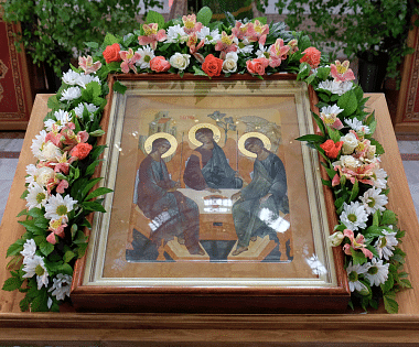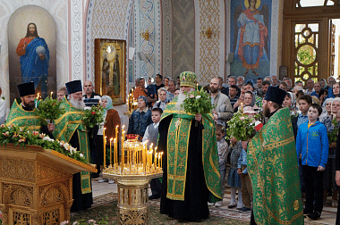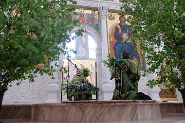 По окончании Литургии на Великой вечерне читались особые коленопреклонные молитвы ко Святой Троице о ниспослании благодати Святого Духа, об очищении грехов и спасении всех. Радостное, благоговейное настроение присутствовало в храме, и солнечный теплый день стал Божиим подарком к Святому празднику.