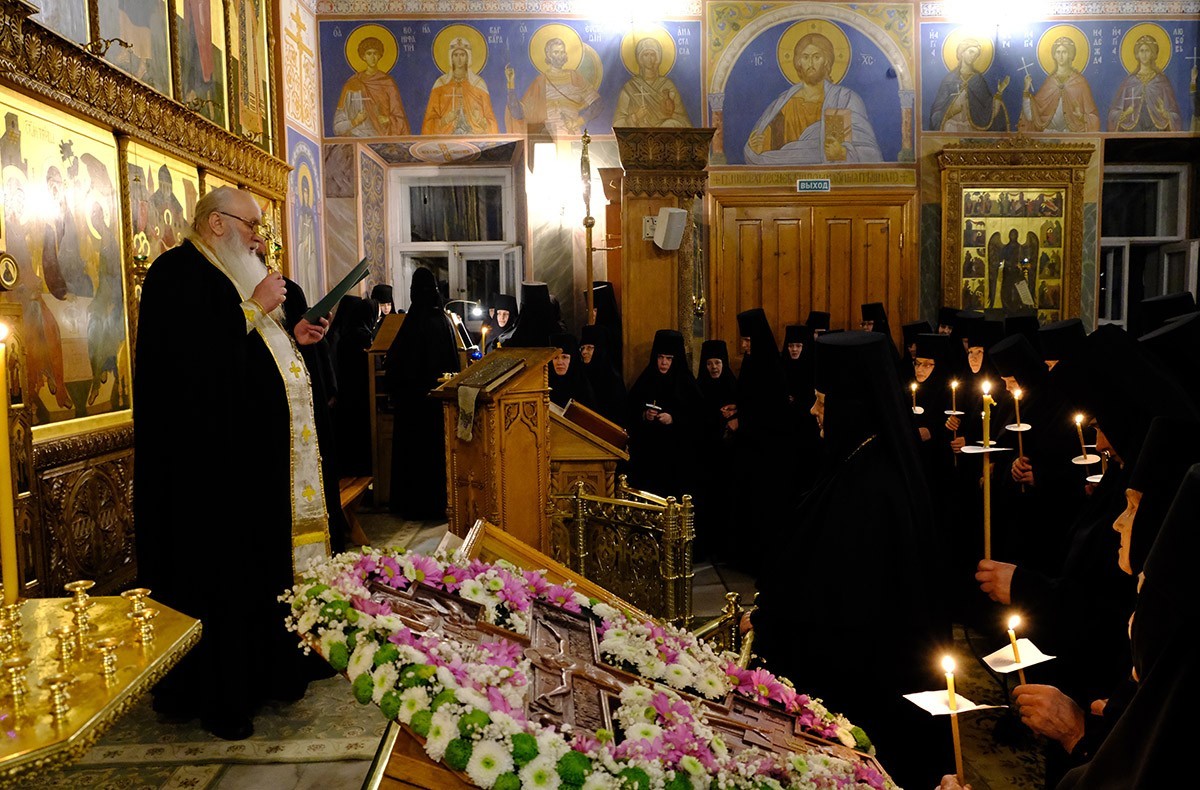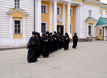 12 апреля 2024 года, в пятницу Крестопоклонной седмицы Великого поста, день памяти преподобного Иоанна Лествичника, в Покровском Хотькове ставропигиальном женском монастыре по благословению Святейшего Патриарха Московского и всея Руси Кирилла старший священник архимандрит Амвросий (Кравчук) совершил иноческие и монашеские постриги насельниц обители.