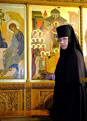 Настоятельница монастыря игумения Олимпиада (Баранова) благословила сестер иконами Пресвятой Богородицы и сказала наставление о монашеском житии.