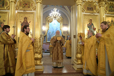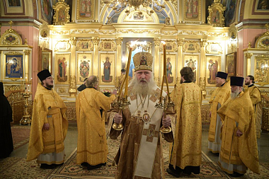 В сугубую ектению были включены особые прошения о ныне чествуемом Святейшем Патриархе Кирилле и о Церкви Русской, им ведомой.