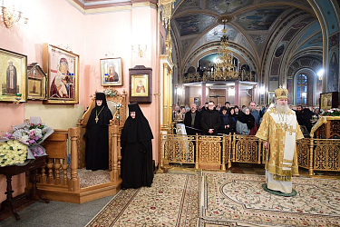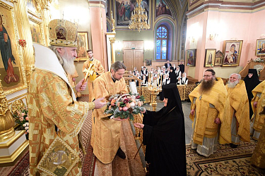 Митрополит Феогност огласил поздравление Святейшего Патриарха Московского и всея Руси Кирилла в адрес игумении Феофании с днем тезоименитства.