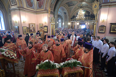 По благословению Святейшего Патриарха Московского и всея Руси Кирилла Божественную литургию в Воскресенском соборе обители возглавил управляющий делами Московской Патриархии, первый викарий Патриарха Московского и всея Руси по г. Москве, наместник Новоспасского ставропигиального монастыря митрополит Воскресенский Дионисий.