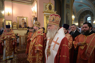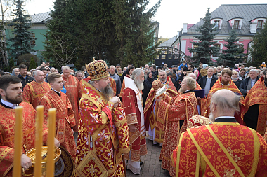 Его Высокопреосвященству сослужили: председатель Синодального отдела по монастырям и монашеству, наместник Донского ставропигиального монастыря митрополит Каширский Феогност, секретарь Патриарха Московского и всея Руси по г. Москве протопресвитер Владимир Диваков, представитель Православной Церкви в Америке в Москве протоиерей Даниил Андреюк, благочинный Покровского округа г. Москвы протоиерей Олег Егоров, руководитель Патриаршей службы протокола протоиерей Андрей Бондаренко, духовенство обители.