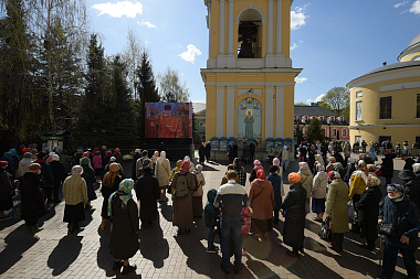 За богослужением молились настоятельница монастыря игумения Феофания (Мискина) с сестрами и воспитанницами детского приюта, многочисленные паломники.