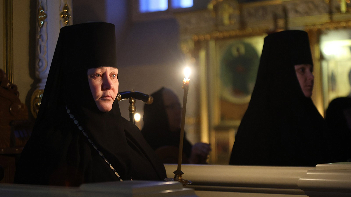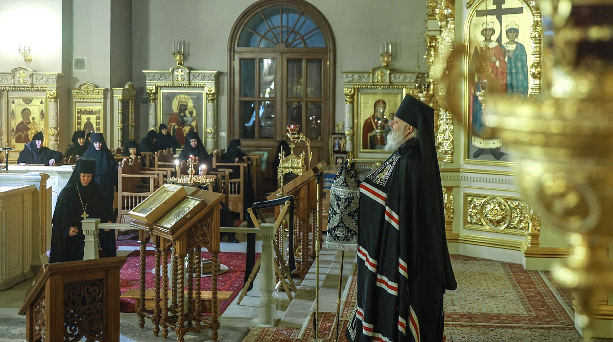 Вечером 27 февраля 2023 года, в понедельник первой седмицы Великого поста, по благословению Святейшего Патриарха Московского и всея Руси Кирилла епископ Видновский Тихон, викарий Святейшего Патриарха, наместник Екатерининского ставропигиального мужского монастыря совершил великое повечерие с чтением Великого покаянного канона прп. Андрея Критского в Кресто-Воздвиженском Иерусалимском ставропигиальном женском монастыре.