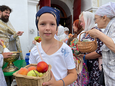 По окончании Литургии владыка совершил освящение плодов нового урожая.