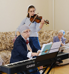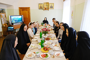 В подарок ребятам преподаватели сделали прощальную презентацию. После праздничной трапезы дети поблагодарили матушку игумению и учителей за заботу о них за все годы обучения, и подарили цветы. Игумения Олимпиада вручила им Святое Евангелие и сладкие подарки. Накануне преподаватель фортепиано вместе с ученицами показали небольшой концерт по итогам обучения.