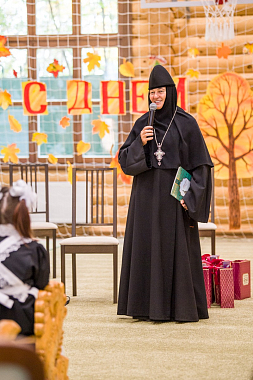 По традиции ребята подарили букеты цветов директору Православной гимназии игумении Феофании (Мискиной), духовнику и учителям.