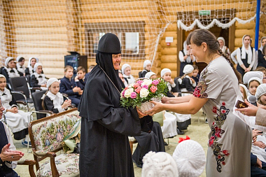 По окончании мероприятия игумения Феофания поздравила учителей гимназии с праздником: