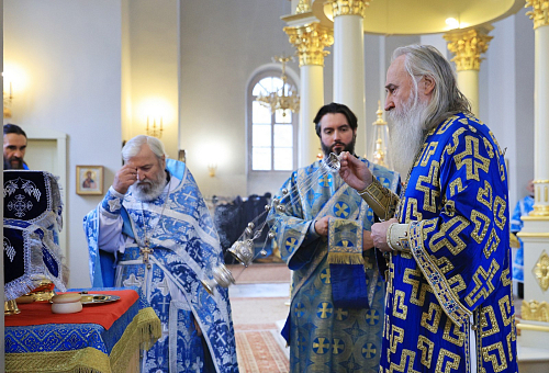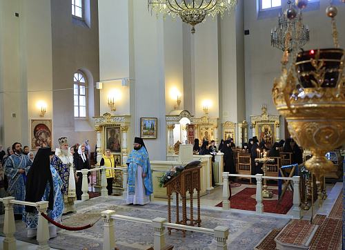 Его Высокопреосвященству сослужило духовенство монастыря.