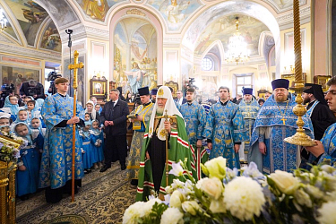 14 октября 2023 года, в праздник Покрова Пресвятой Владычицы нашей Богородицы и Приснодевы Марии, Святейший Патриарх Московский и всея Руси Кирилл совершил Божественную литургию в верхней церкви храма Покрова Пресвятой Богородицы Покровского ставропигиального женского монастыря у Покровской Заставы г. Москвы.