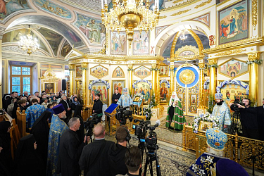 На сугубой ектении были вознесены особые прошения, Предстоятель Русской Церкви прочитал молитву о Святой Руси.