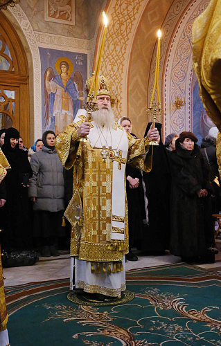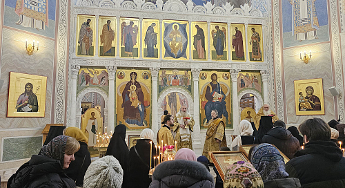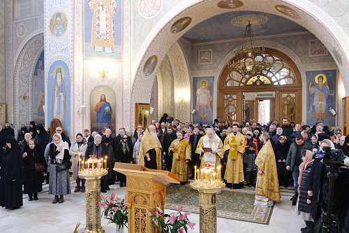 9 февраля 2025 года, в Неделю о мытаре и фарисее, праздник Собора новомучеников и исповедников Церкви Русской, председатель Синодального отдела по монастырям и монашеству, наместник Донского ставропигиального мужского монастыря митрополит Каширский Феогност совершил Божественную литургию в Покровском Хотькове ставропигиальном женском монастыре.