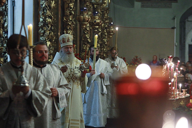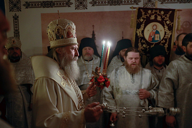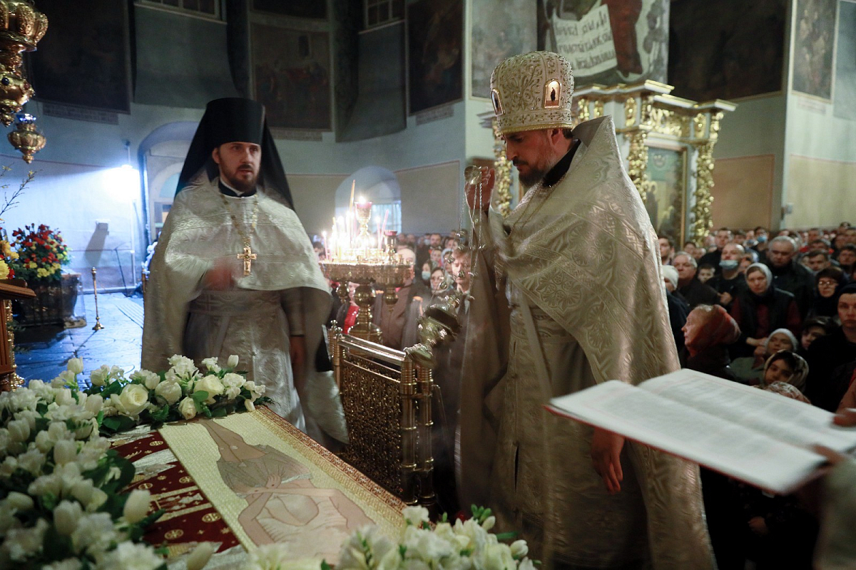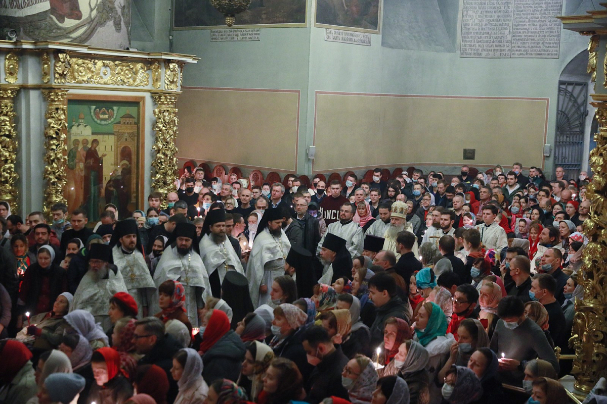 В полночь в обители был совершен пасхальный крестный ход, который символизирует шествие мироносиц ко гробу Спасителя. Затем началась праздничная утреня, во время которой исполнялся пасхальный канон, прославляющий победу Спасителя.