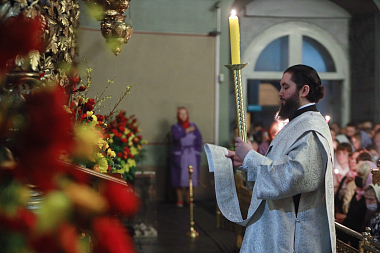 За богослужением было зачитано Пасхальное послание Святейшего Патриарха Московского и всея Руси Кирилла архипастырям, пастырям, диаконам, монашествующим и всем верным чадам Русской Православной Церкви.