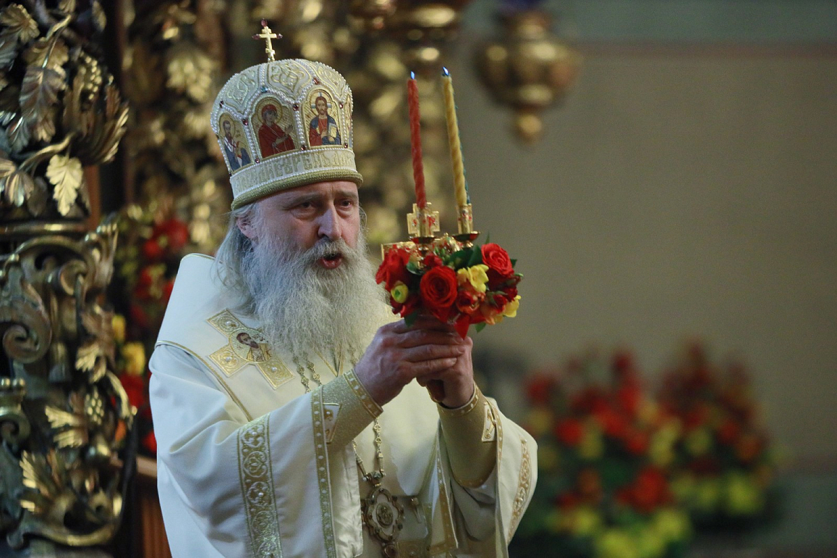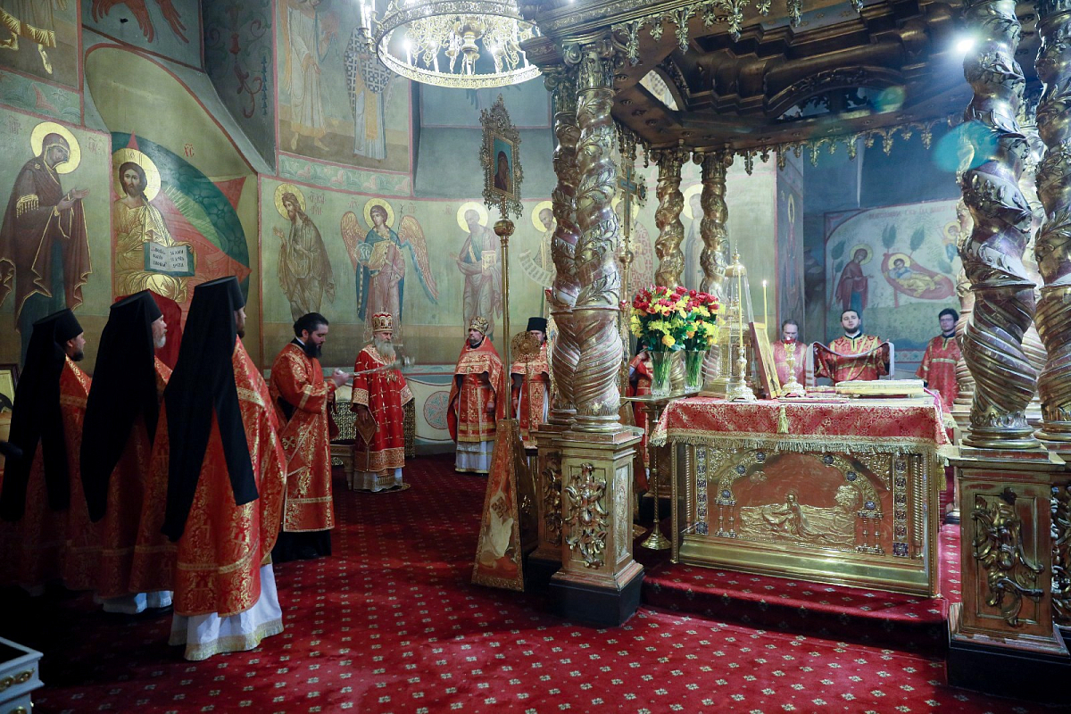 По окончании утрени и пения часов Пасхи архиепископ Феогност возглавил Божественную литургию. Его Высокопреосвященству сослужила братия монастыря в священном сане.