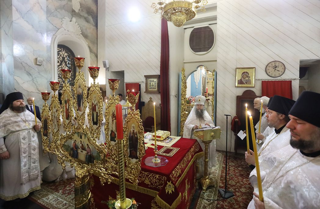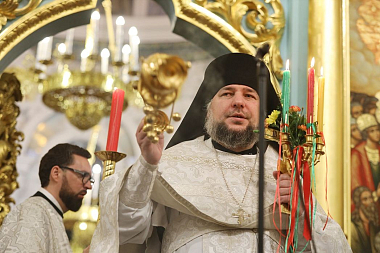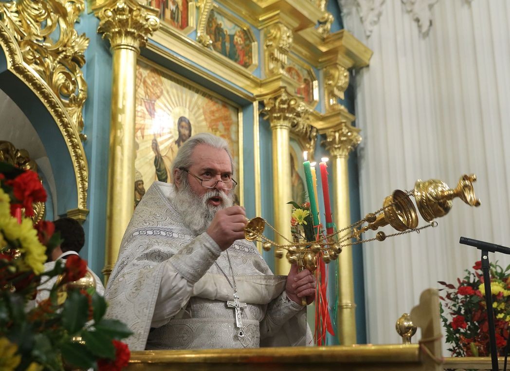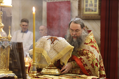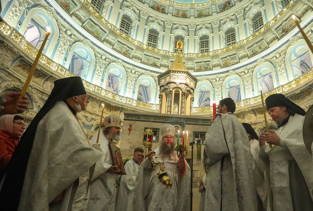 По заамвонной молитве были освящены артосы и зачитано обращение Святейшего Патриарха к священнослужителям и мирянам в праздник святой Пасхи.