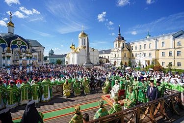 23 июня 2024 года, в праздник Святой Троицы (Пятидесятницы), престольный праздник Свято-Троицкой Сергиевой лавры, Святейший Патриарх Московский и всея Руси Кирилл совершил Божественную литургию на Соборной площади обители преподобного Сергия Радонежского.