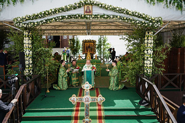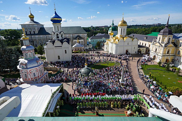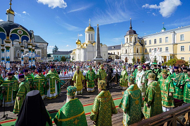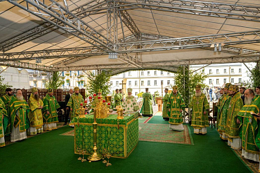Для совершения праздничной Божественной литургии на Соборной площади был устроен помост, а перед Успенским собором Лавры — престол под сенью.