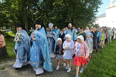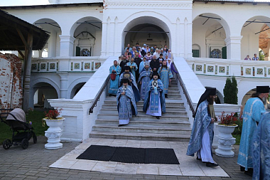 По окончании Литургии был совершен крестный ход вокруг собора с молебным пением Пресвятой Богородице.