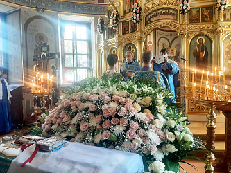 Накануне праздника было совершено торжественное всенощное бдение с выносом плащаницы, которую возложили на украшенный цветами одр.