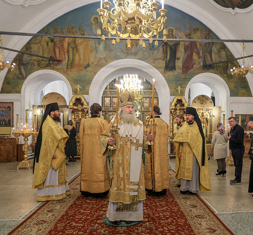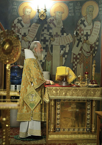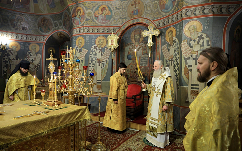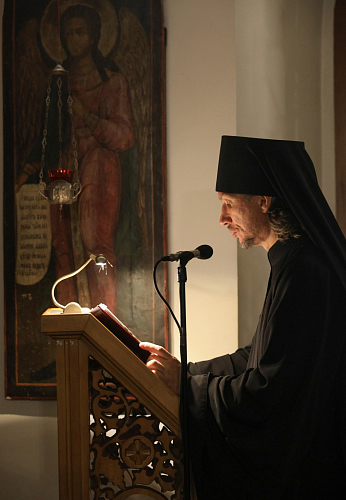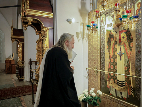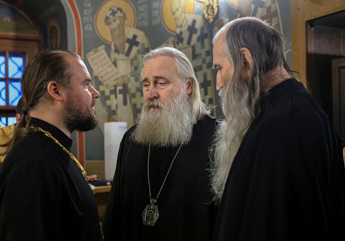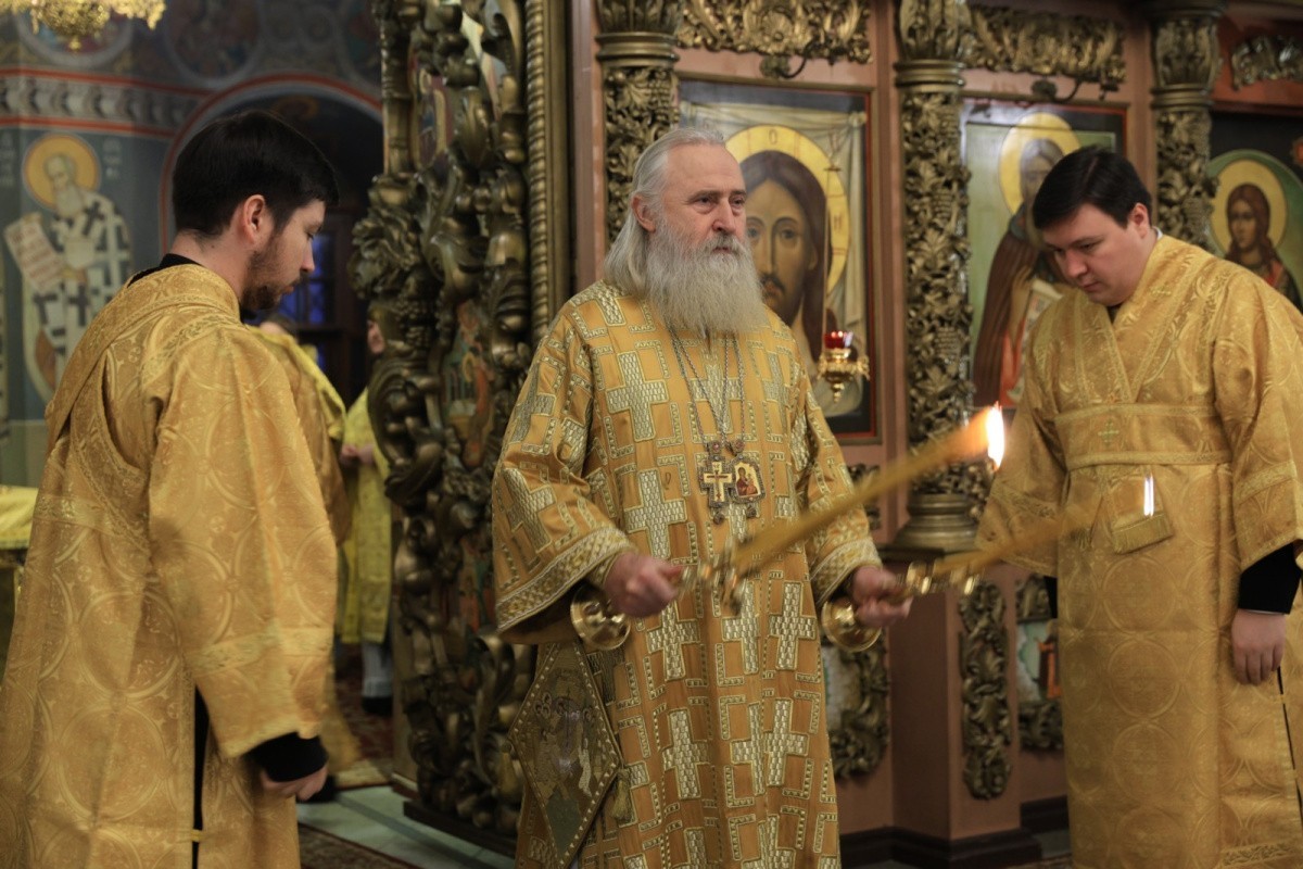 Его Высокопреосвященству сослужил временно исполняющий обязанности наместника священноинок Парфений (Леонов) с братией монастыря в священном сане.