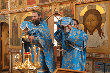 С пастырским словом к верующим обратился иеромонах Иоанн, в котором кратко рассказал об истории праздника, молитвенном заступничестве Матери Божией за Россию, а также о единстве между людьми.