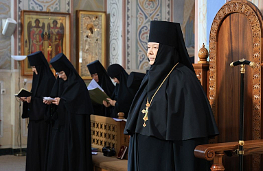 Богослужебные песнопения исполнил хор сестер монастыря.