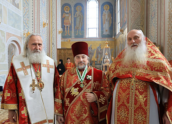 Затем митрополит Феогност вручил клирику обители протодиакону Николаю Середнему орден преподобного Серафима Саровского II степени – в честь 35-летия служения Русской Православной Церкви и 60-летнего юбилея.