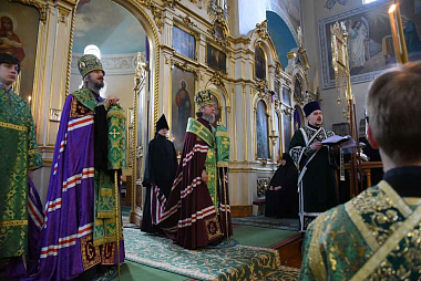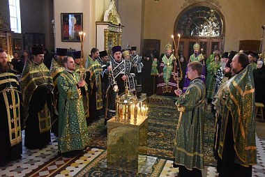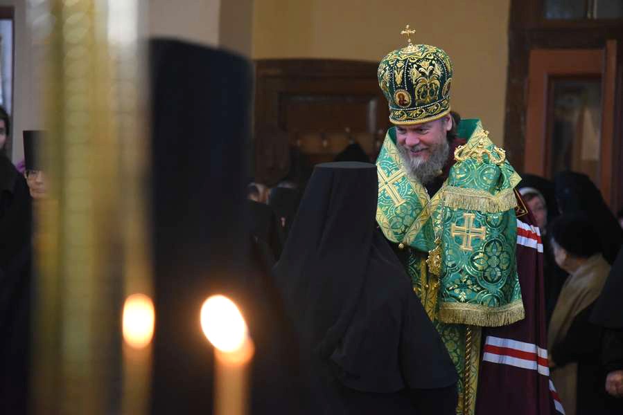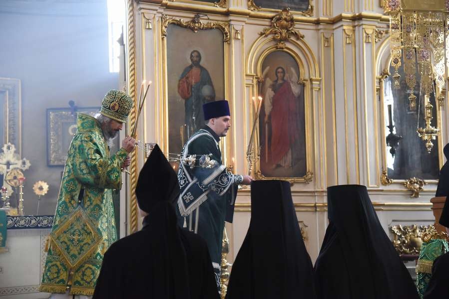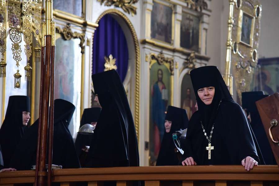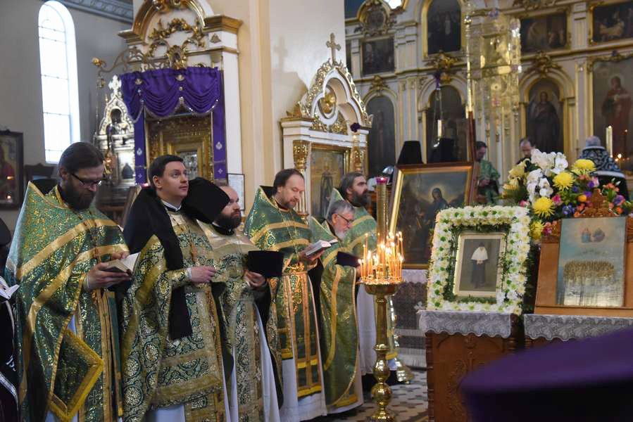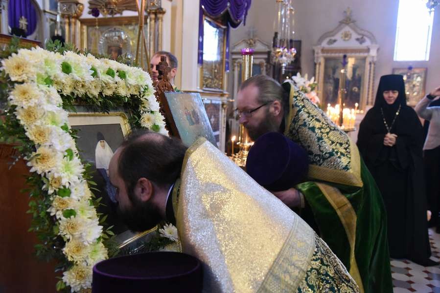 Утром в Успенском соборе монастыря началась полунощница, после чего была отслужена последняя панихида по блаженной монахине Екатерине.