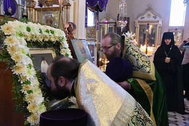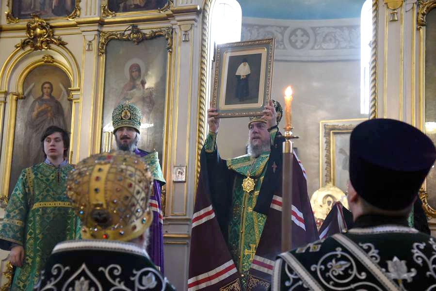 С амвона было зачитано решение Священного Синода Русской Православной Церкви о причислении монахини Екатерины к лику святых для местного почитания.