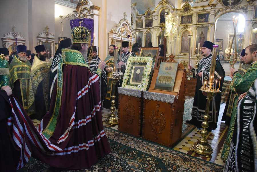 Вынос иконы новопрославленной святой сопровождался пением тропаря, кондака и величания.