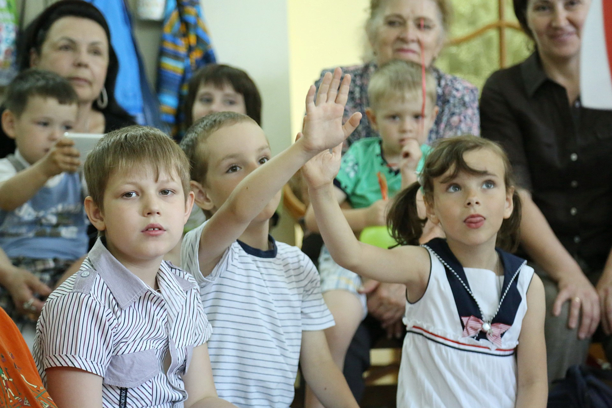 Каждый праздник, который проводится в православном развивающем кружке, – это плод совместного творчества педагогов, малышей и их родителей. Все, кто пришел на выпускную встречу, стали ее участниками: детки пели песенки, рассказывали стихи, играли в увлекательные игры, отгадывали загадки. Родителей они порадовали инсценированной песенкой «Вместе весело шагать по просторам».