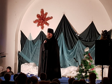 Праздничный спектакль был разыгран силами Социально-реабилитационного центра «Детский приют Саввино-Сторожевского монастыря» и театрального кружка при храме Рождества Христова в г. Звенигороде.
