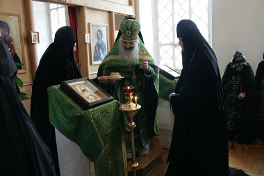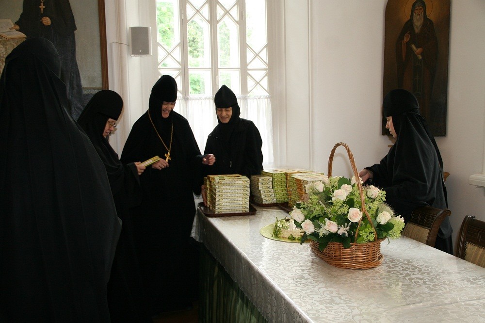 В завершение богослужения духовенство монастыря поздравило матушку Сергию с днем памяти ее небесного покровителя, благословив святой просфорой. После трапезы сестры преподнесли матушке игумении свои подарки.