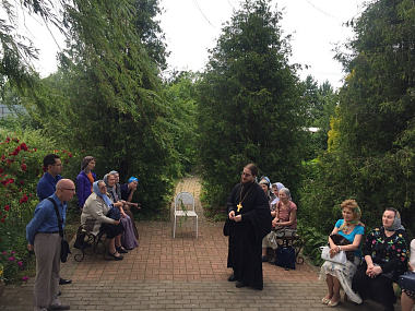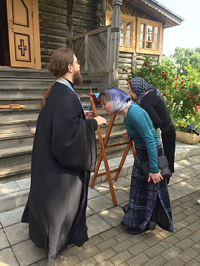 В этот день по окончании Божественной литургии, которую возглавил и.о. начальника Московского подворья Валаамского монастыря игумен Иосиф (Крюков), и трапезы паломники отправились на экскурсию по территории скита, которую для них провел рясофорный послушник Олег Стручков.