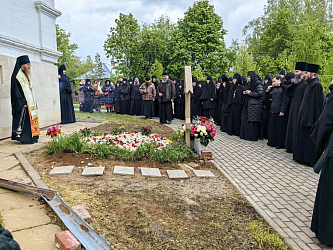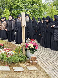 В завершение своего посещения владыка Иосиф отслужил литию на могиле духовника Казанской Амвросиевской пустыни архимандрита Поликарпа (Ничипорука), почившего девять дней назад.