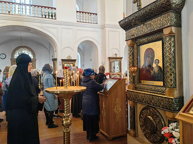 Продолжился праздник в сестринской трапезной, по окончании обеда епископ Иосиф благословил сестер и гостей обители и подарил всем по шоколадке.