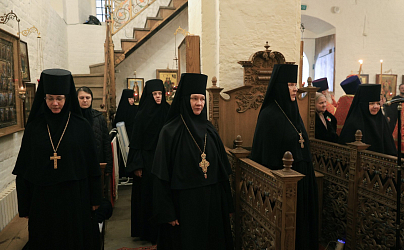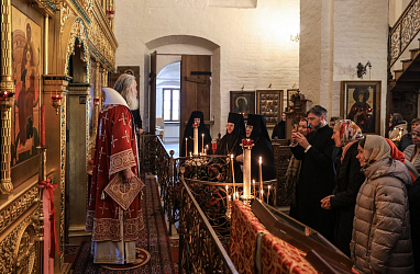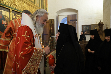 За архиерейским богослужением молились: настоятельница монастыря игумения Викторина (Перминова); заместитель председателя Синодального отдела по монастырям и монашеству, настоятельница Зачатьевского ставропигиального женского монастыря г. Москвы игумения Иулиания (Каледа); настоятельница Никитского женского монастыря г. Каширы Московской области игумения Маргарита (Чекулаева); сестры и прихожане обители.