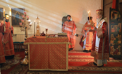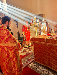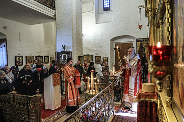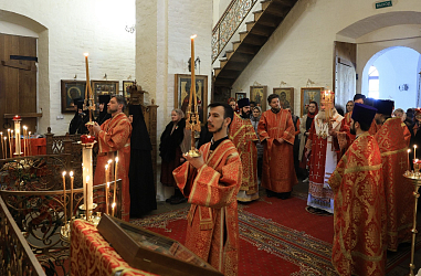 Его Высокопреосвященству сослужило монастырское духовенство.