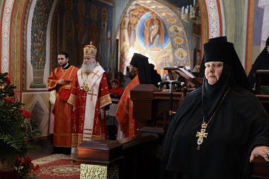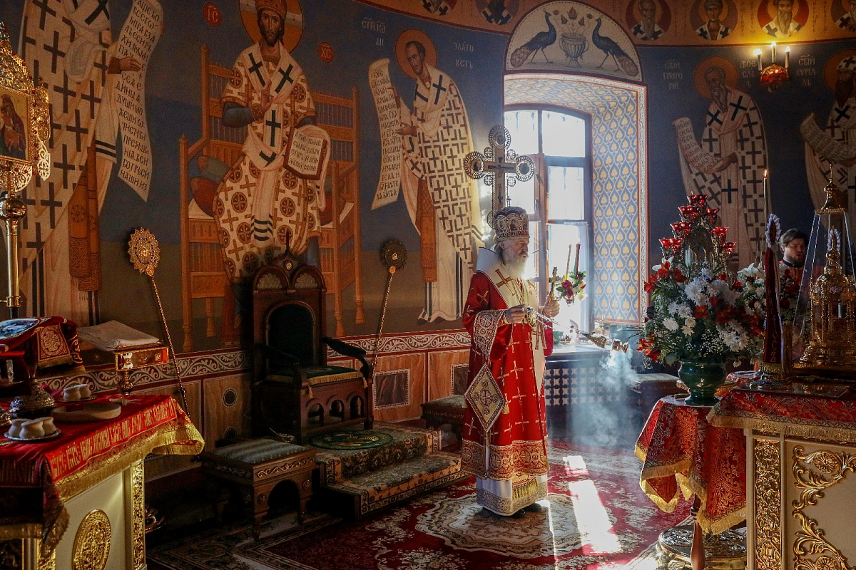 В монастырском храме во имя Живоначальной Троицы Его Высокопреосвященству сослужили клирики Стефано-Махрищском обители и подворья монастыря, гости обители в священном сане.
