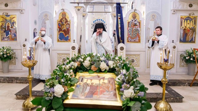 Божественную литургию возглавил руководитель Центра игумен Иоасаф (Полуянов).